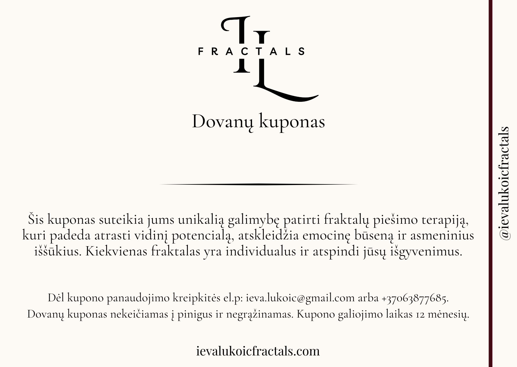 Kuponas tinka fraktalinei sesijai, fraktalinei analizei, gaminiams ir kitiems el.parduotuvėje esančiams produktams.